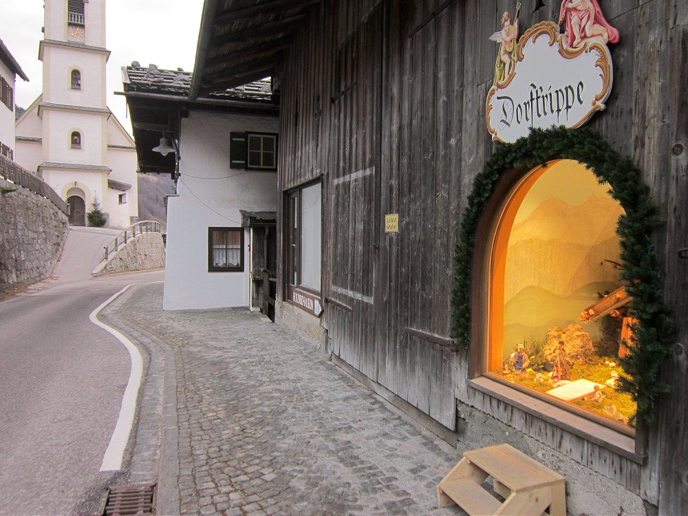 Gegenüber dem Pfarrhof im sog.“Schusterniggen-Stadel“ ist unser Kripperl vom Advent bis Dreikönig aufgebaut. Es wird mehrmals umgestaltet; angefangen von der Verkündigung Mariens, über die Herbergsuche, die Geburt Christi, bis zur Ankunft der Heiligen Drei Könige. Die Figuren tragen das bodenständige bäuerliche G`wand, so wie es teilweise heute noch getragen wird. Der Stall zu Betlehem, die Geburtsstätte Christi ähnelt einem der vielen Heustadel in der Ramsau. Alle sind zum Besuch des Kripperl`s herzlich eingeladen um die dargestellten Bibeltexte zu lesen und sich auf die „staade“ Zeit einzustimmen.